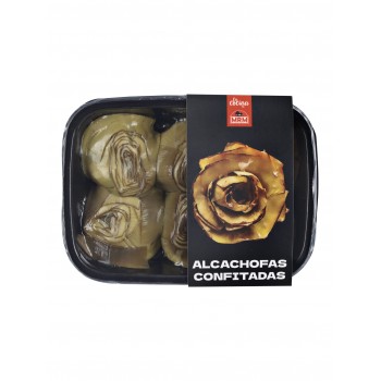 Alcachofas de Tudela confitadas a fuego lento (90°C durante 4h).
