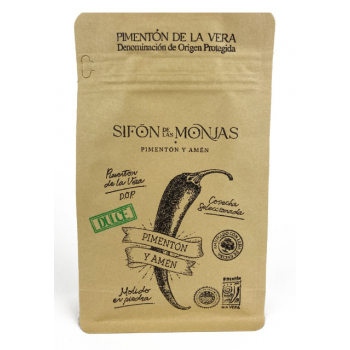 El pimentón ahumado dulce original, de nuestra propia cosecha, secado al humo con leña de encina. Elaborado con el pimiento de la variedad “Bola”, también conocida como “Ñora”. La pureza de nuestro oro rojo aportará a tus platos un aroma, sabor y color únicos e inigualables. Por su calidad, posiblemente el mejor pimentón ahumado dulce del mundo. Este formato es perfecto para quienes utilizan nuestro pimentón ocasionalmente y para quienes lo prueban por primera vez. Su fecha de consumo preferente es de dos años desde la cosecha en septiembre. Ideal para preparar paellas, salsas, gazpacho y para acompañar pescados o pulpo.