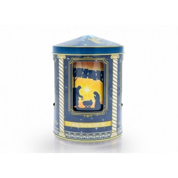Una edición limitada que convierte el arte de regalar en una experiencia inolvidable. Esta lata carrusel musical, inspirada en el viaje y adoración de los Reyes Magos, gira suavemente al compás de una melodía celestial, revelando una escena ilustrada que se despliega en movimiento a través de las ventanas. Decorada con un cielo estrellado y detalles en oro, se convierte en un objeto de colección que une tradición, emoción y sabor en cada giro.