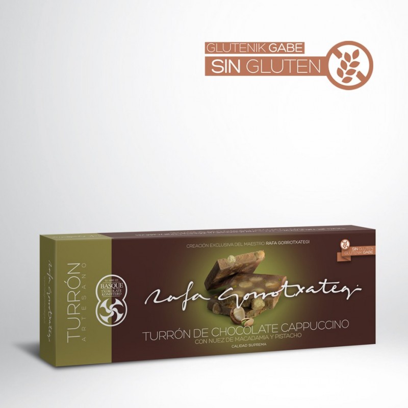 Elaboramos este delicioso y fino turrón con sabor a café cappuccino, con una cuidada selección de crujientes nueces de macadamia y pistachos.